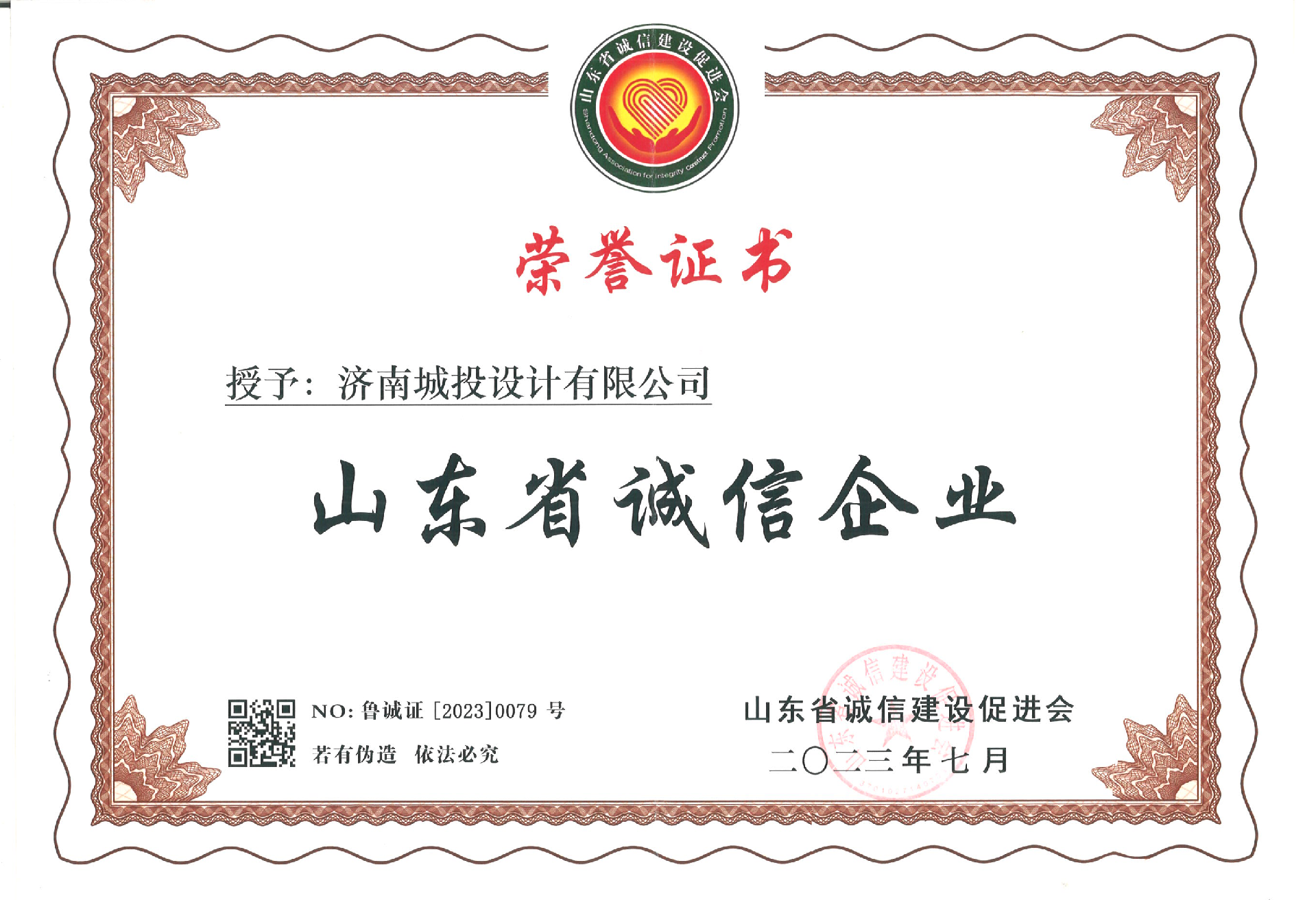 濟(jì)南城投設(shè)計(jì)有限公司在全省企業(yè)誠(chéng)信建設(shè)工作會(huì)議中喜獲殊榮